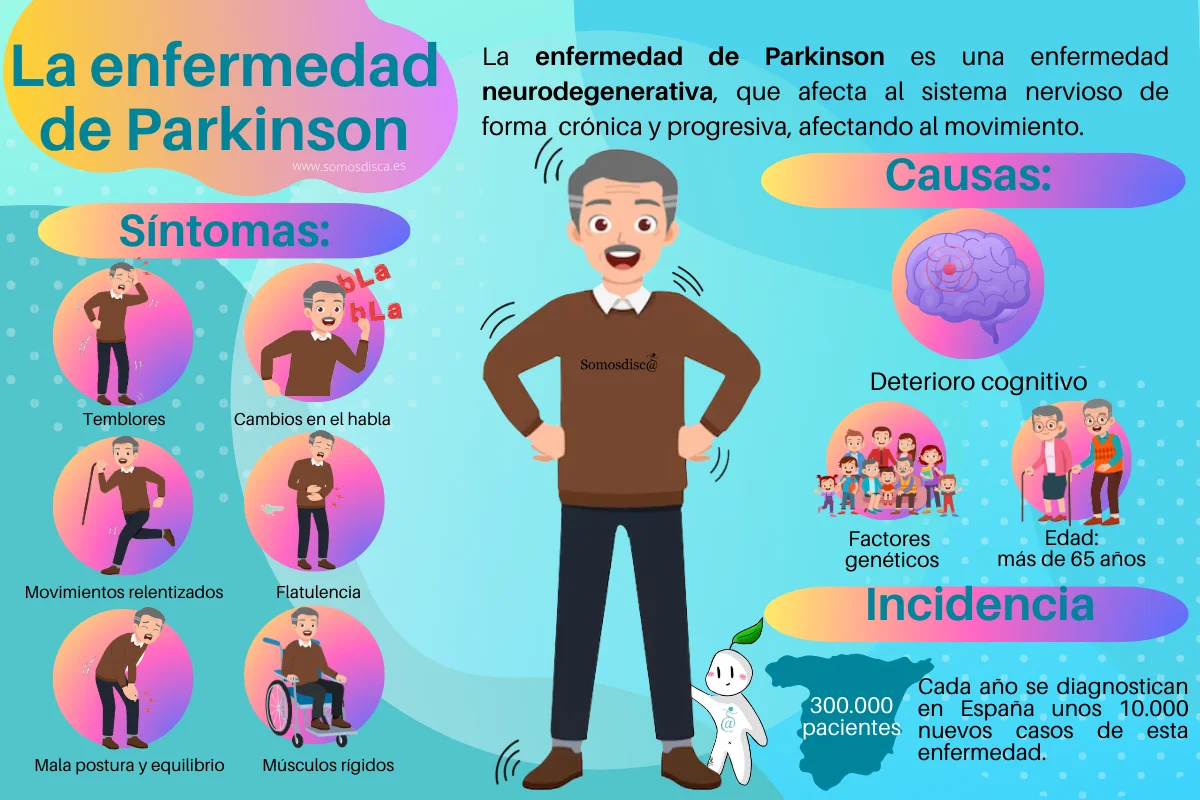 Algunas veces es difícil reconocer si se padece de la enfermedad de Parkinson. Esta enfermedad se caracteriza por la falta de producción de una sustancia química en el cerebro llamada dopamina, la cual es responsable de ayudar a los movimientos del cuerpo y de regular el estado de ánimo de una persona. Las personas que sufren de Parkinson pueden tomar medicamentos que ayudan a mejorar sus síntomas. La enfermedad de Parkinson es progresiva, sin embargo si usted consulta con su doctor, el puede ayudarle a seguir un tratamiento adecuado y mejorar la calidad de vida.